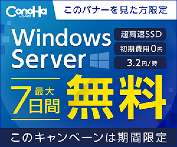 | 商品名 | 24時間安定稼働!初期費用無料の超高速VPS【ConoHa for Windows Server】 | 商品カテゴリ | レンタルサーバー・ホスティング |